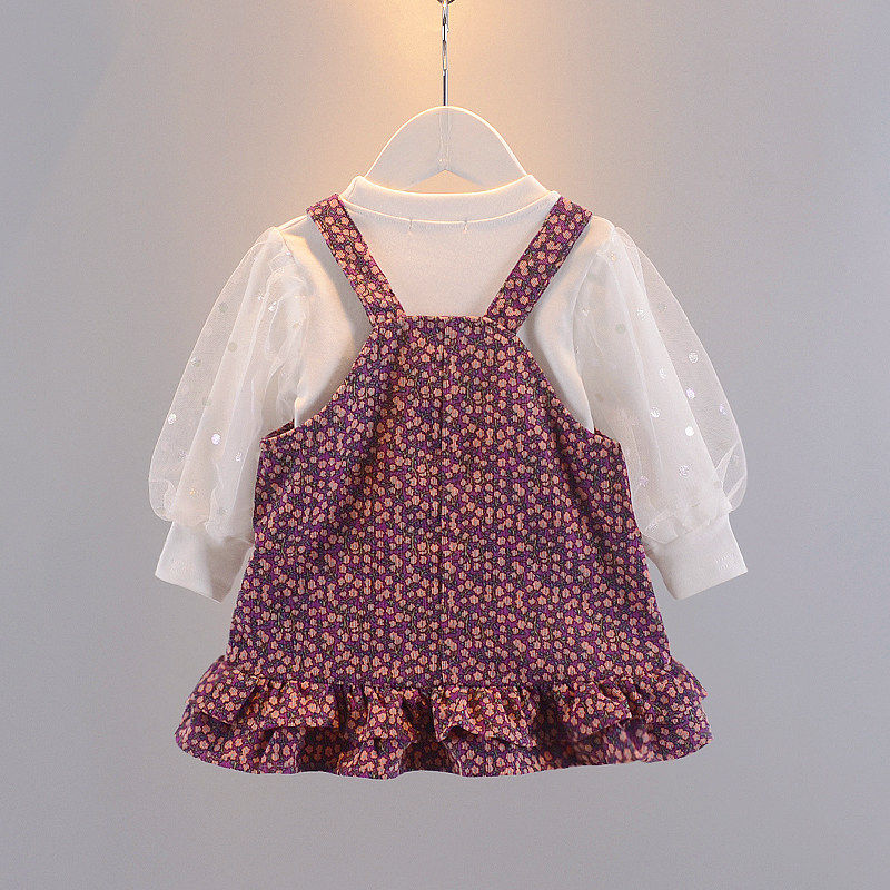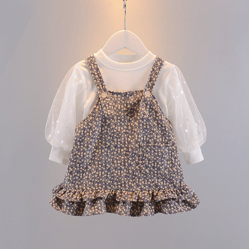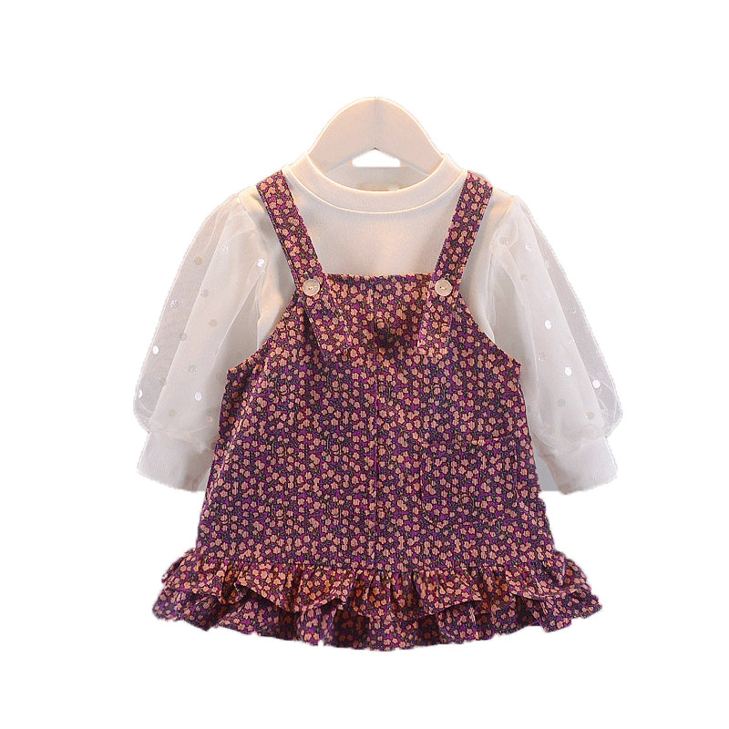 2021 new female baby cuddling with baby bag dress 0-3 years old baby crumbed white T-shirt little girl long sleeve suit tide