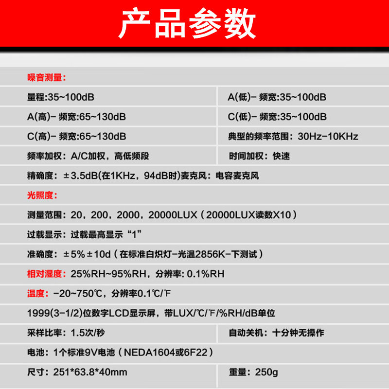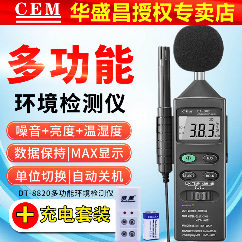 CEM multifunctional environmental detector DT8820 air noise volume light brightness temperature and humidity tester photometer