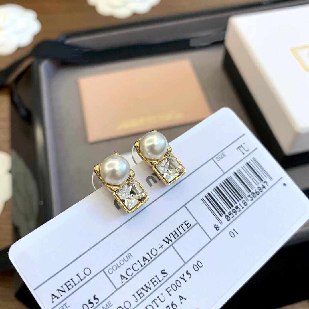 Miao small pearl square diamond ear needle Japanese short earrings temperament ear clip temperament lady earrings without ear holes female