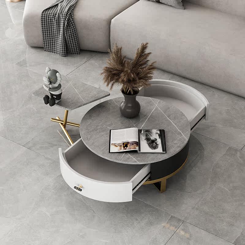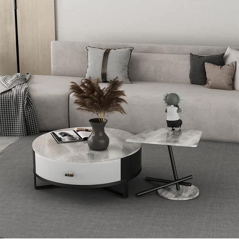 Nordic slate round coffee table combination small apartment modern minimalist marble light luxury small coffee table table living room home