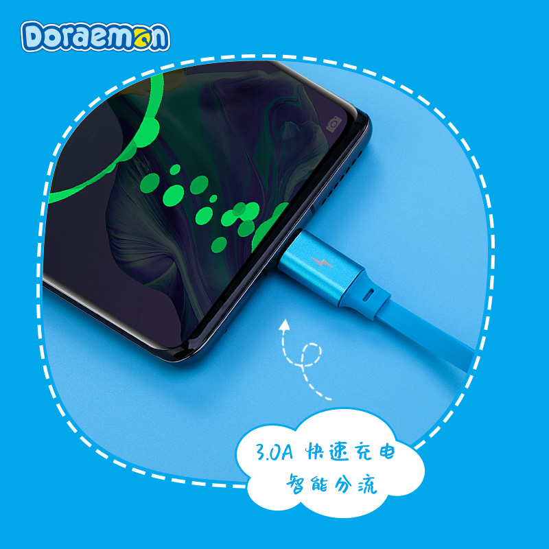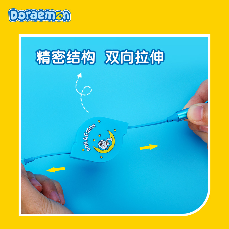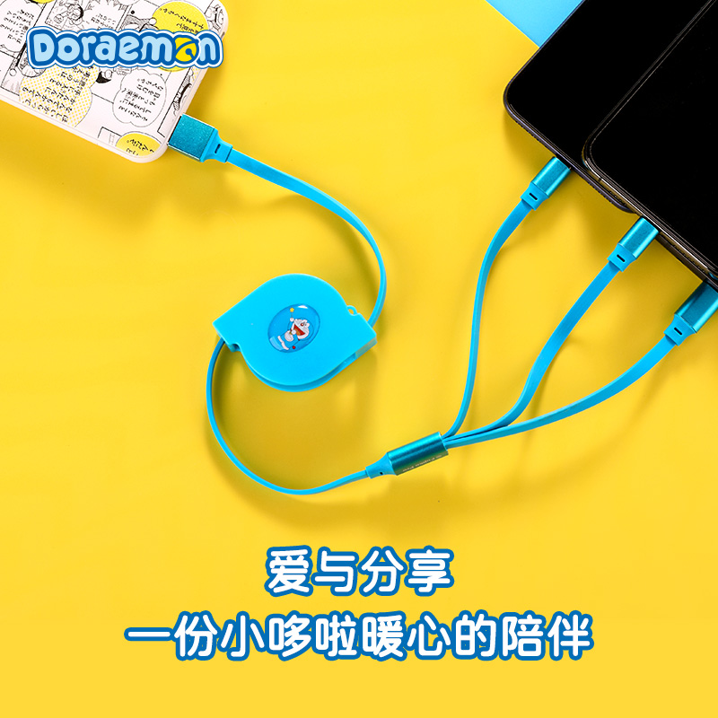 Doraemon data cable one drag three charging cable Apple typeec Android 3 in 1 mobile phone telescopic fast line blue Fat Car extension suitable for ipad Huawei iphone11 Xiaomi