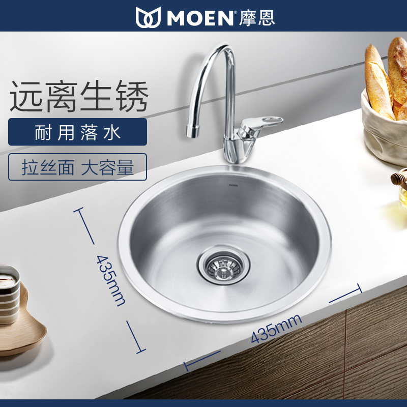 Morn Round Sink Single Sink Package 304 Stainless Steel Kitchen Naughty Basin Dishwashing Pool Water Pool Subkitchen 23607