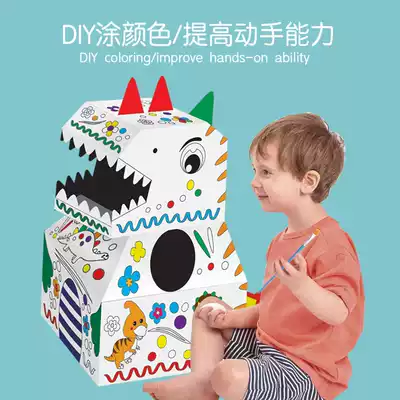Douyin wearing dinosaur cardboard box three-dimensional assembly children's diy graffiti white film color Rex carton toy