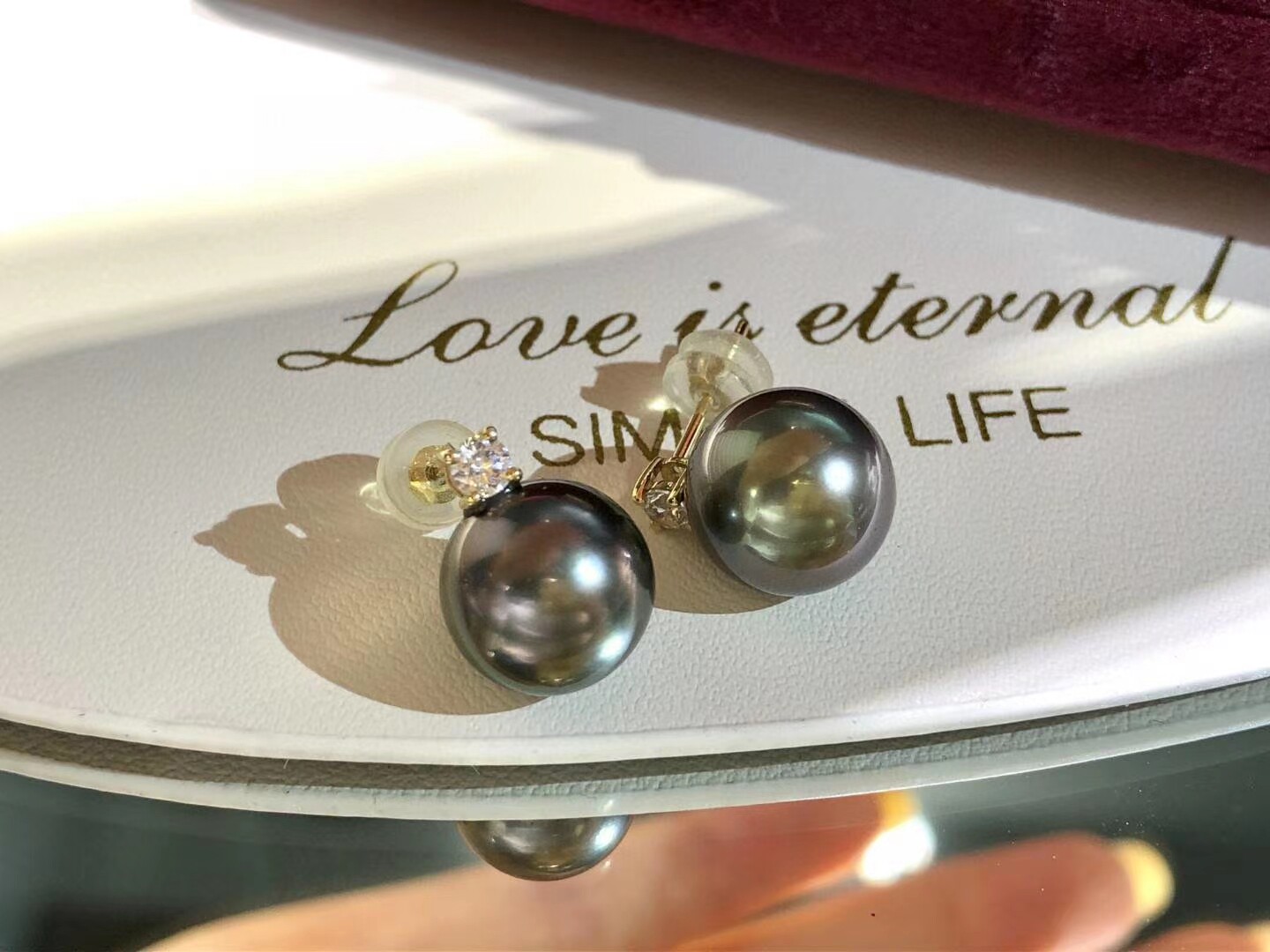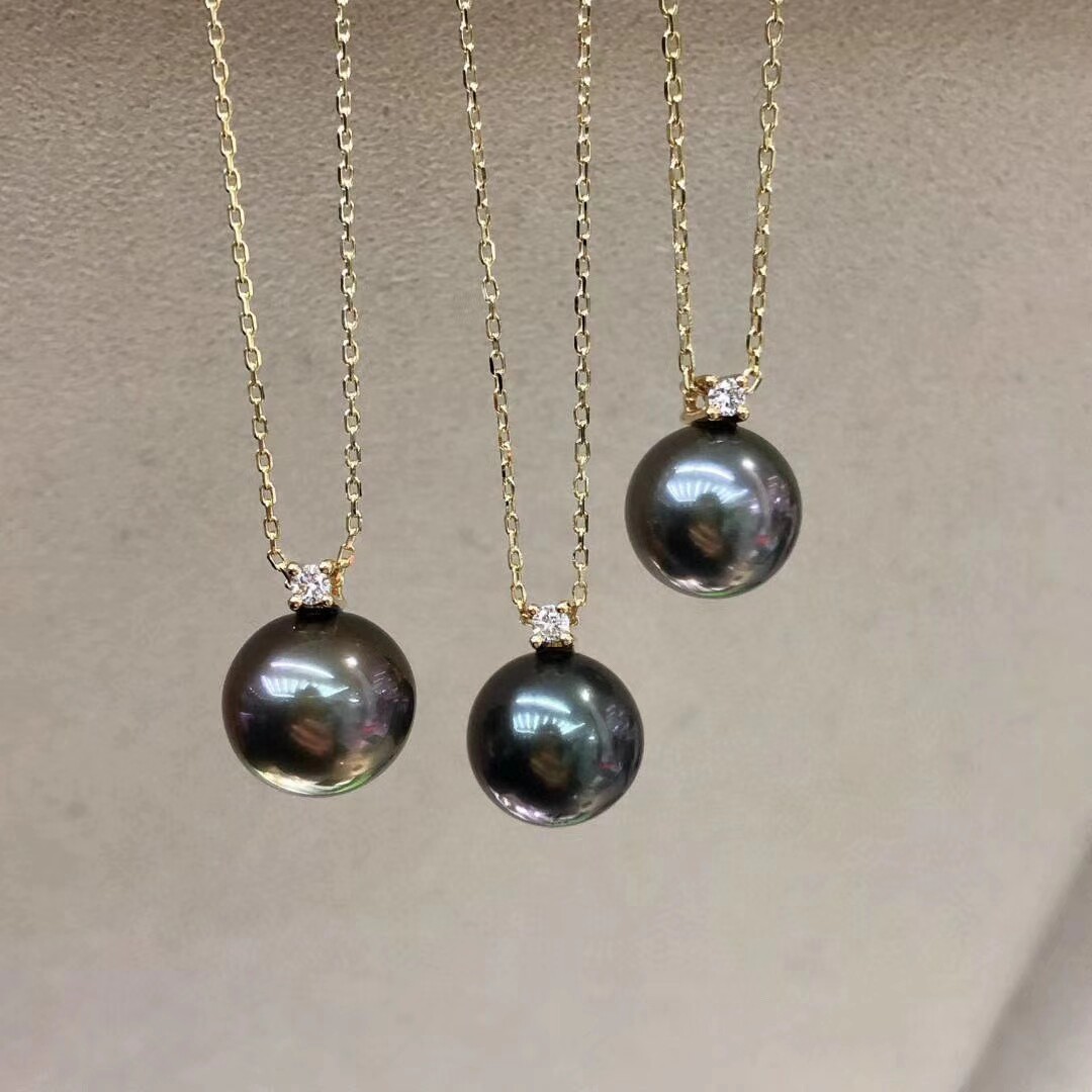 18k Princess Tahitian Seawater Black Pearl Pendant Earring Set Simple Gift for Girlfriend - Taobao
