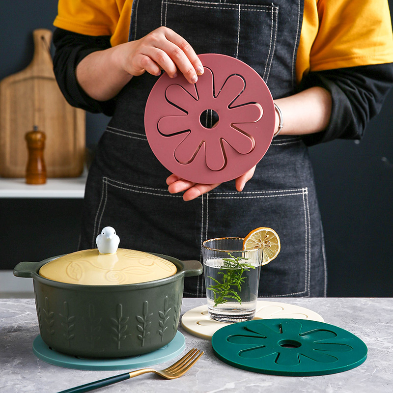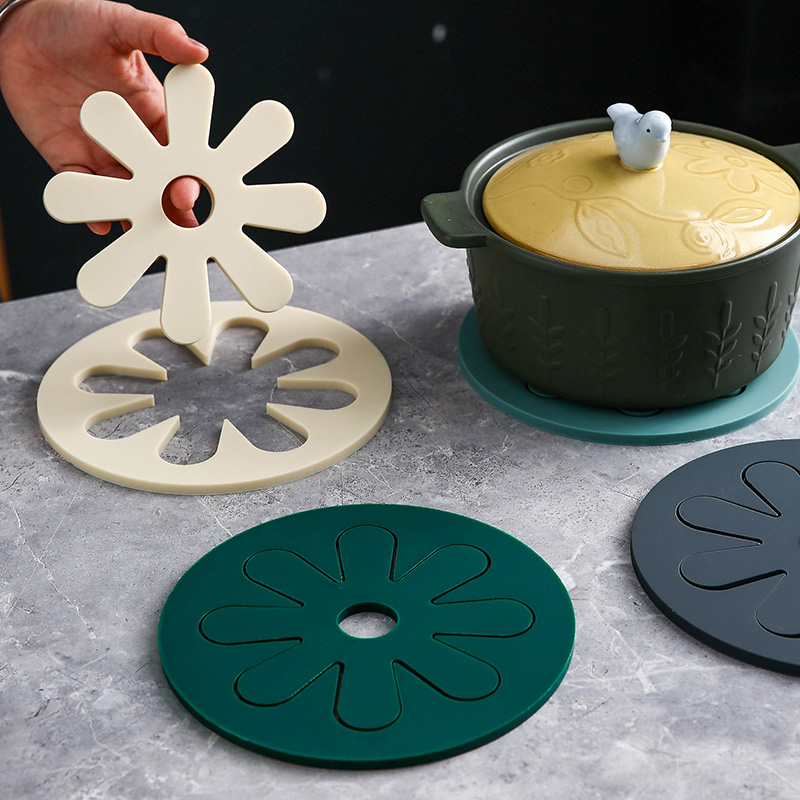 Dark green pot holder (round flower) Red pot holder (round flower) Blue pot holder (round flower) Grey pot holder (round flower) White pot holder (round flower) Dark green pot holder - silicone Red pot holder - silicone