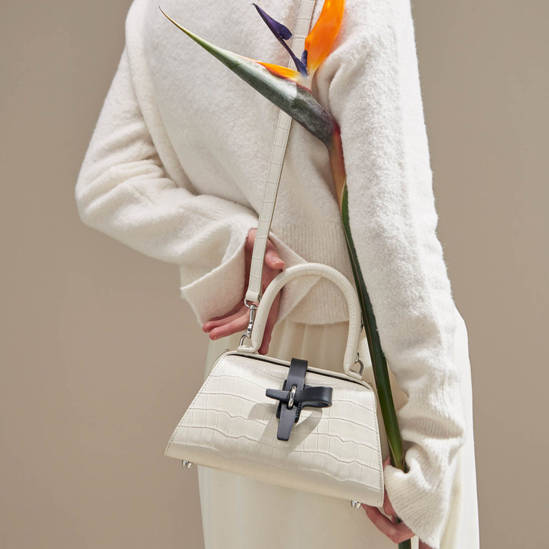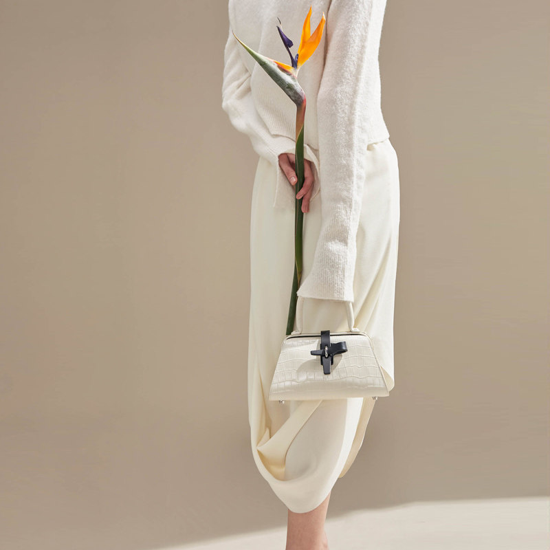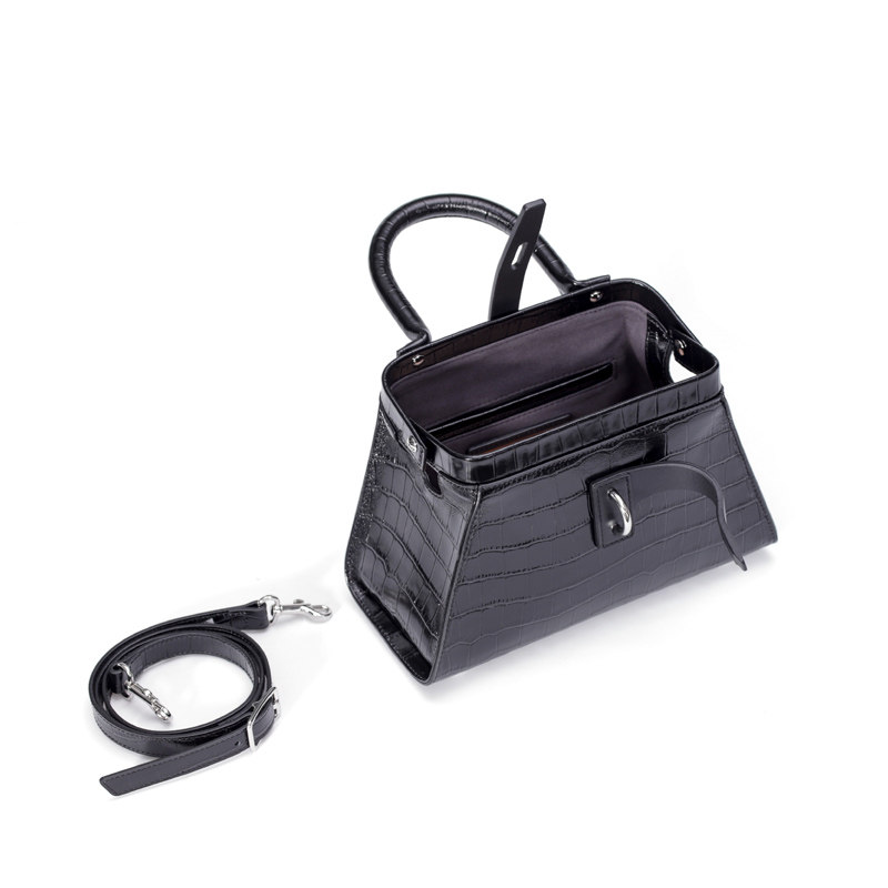 BEN by SONG Latch Series Crocodile Pattern Leather Trapezium Doctor Bag Retro Commuter Chinese Shoulder Bag
