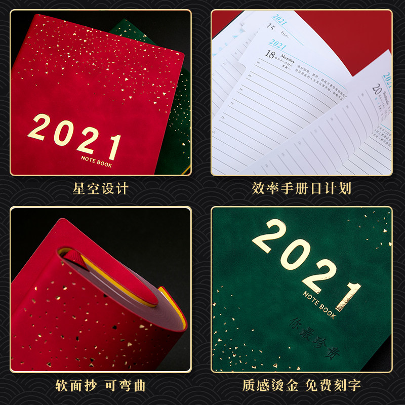 2021 Schedule Book Self-Discipline Punch Card Book Work Calendar Plan Book 365 Days Notebook Sub Starlight Literature and Art Exquisite Notepad Time Management Efficiency Manual Customizable Printable Logo