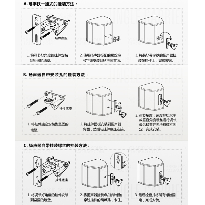 Speaker wall hanging bracket surrounded by a pair of professional audio thick wall rack universal card bag speaker hanging rack