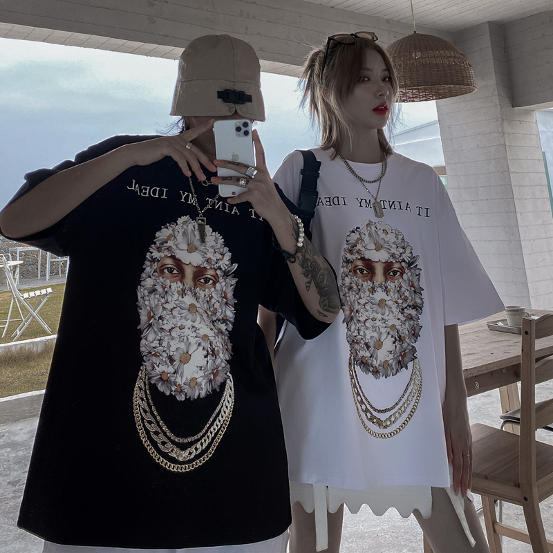chic bishop pop brand fashion printed short-sleeved T-shirt men's wide size hip-hop style couple half-sleeve summer dress