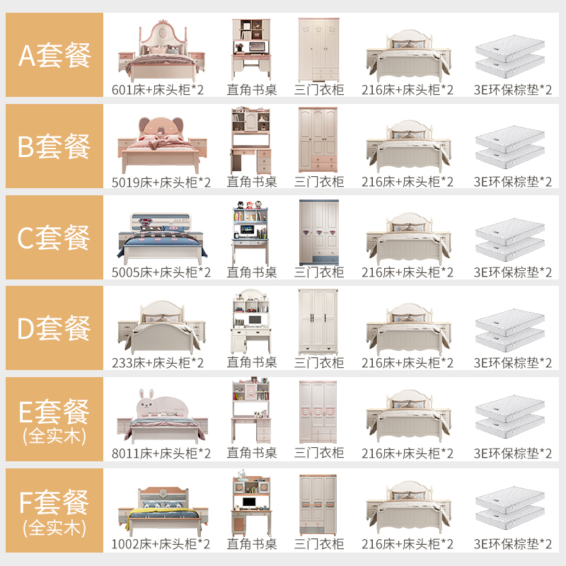 Solid wood children's sheets bed bed 1.5m boys suite furniture bedroom combination girls children's room furniture set