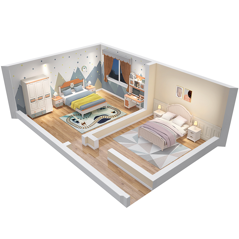 E-Rabbit Themed (All Solid Wood) Rib Frame Two-Bedroom Package