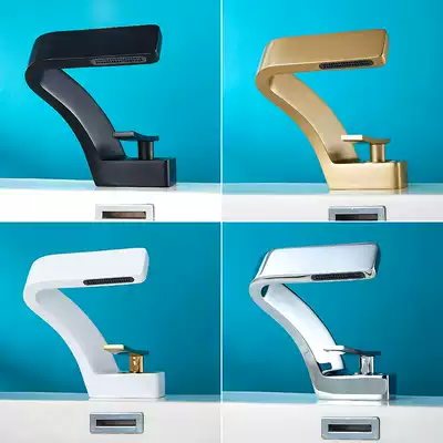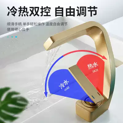 Waterfall faucet Hot and cold all copper light luxury bathroom powder room hand washing washbasin basin single hole brushed gold