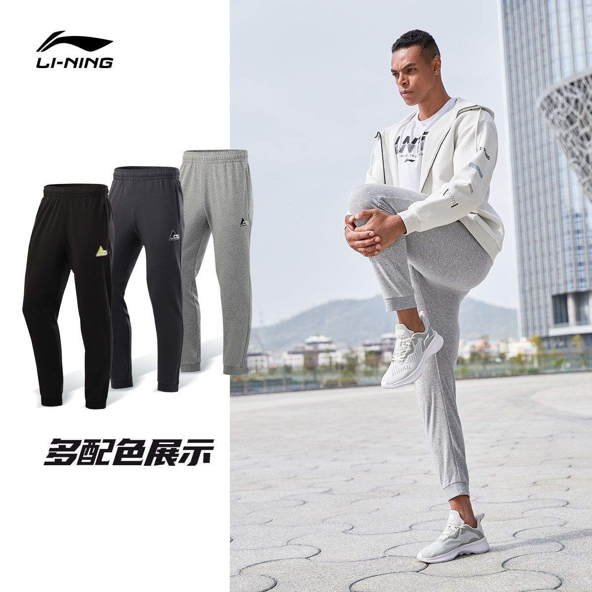 Li Ning Sports Long Pants Male Grey Loose Wear Pants Slim Fit Sports Training Fitness Clothing Bouquet Toe Knitted Sports Trousers
