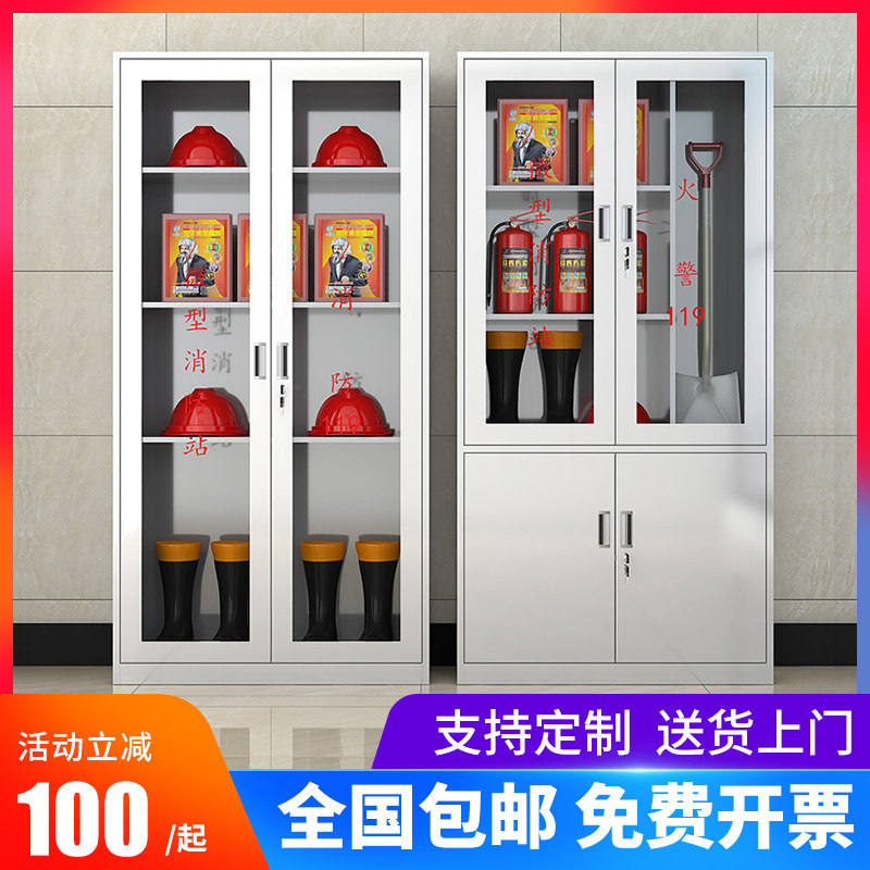 Stainless steel miniature fire cabinet Full set of fire extinguishing equipment display cabinet site emergency tools equipment storage cabinet with lock