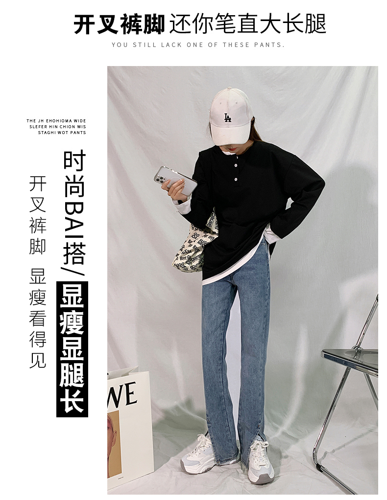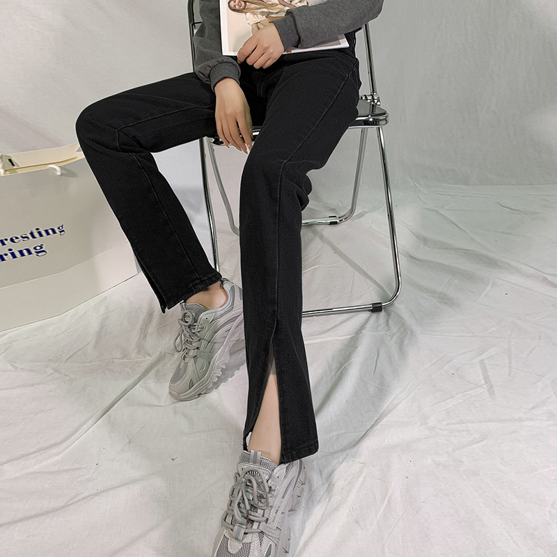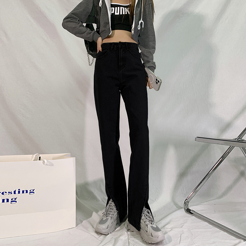 High Waist Open Fork Jeans Women New Micro Horn Pants Loose to Lean Broadlegged Front Bifurcated Trumpeter Pants