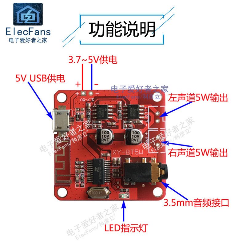 Bluetooth 4 2 decoding board MP3 lossless onboard speaker sound power amplifier decoder retrofit XY-BT5W module-Taobao