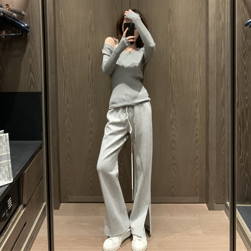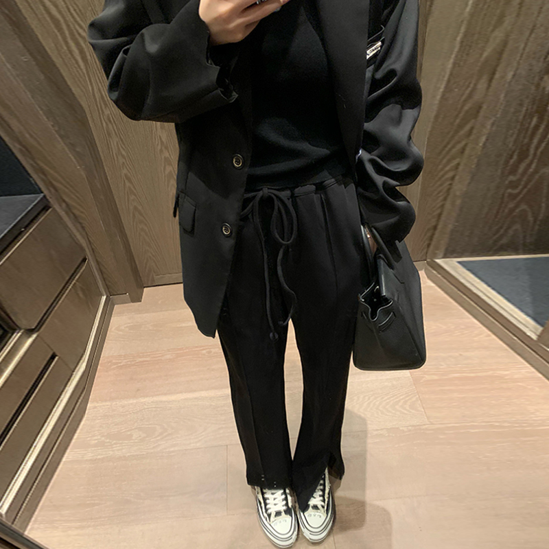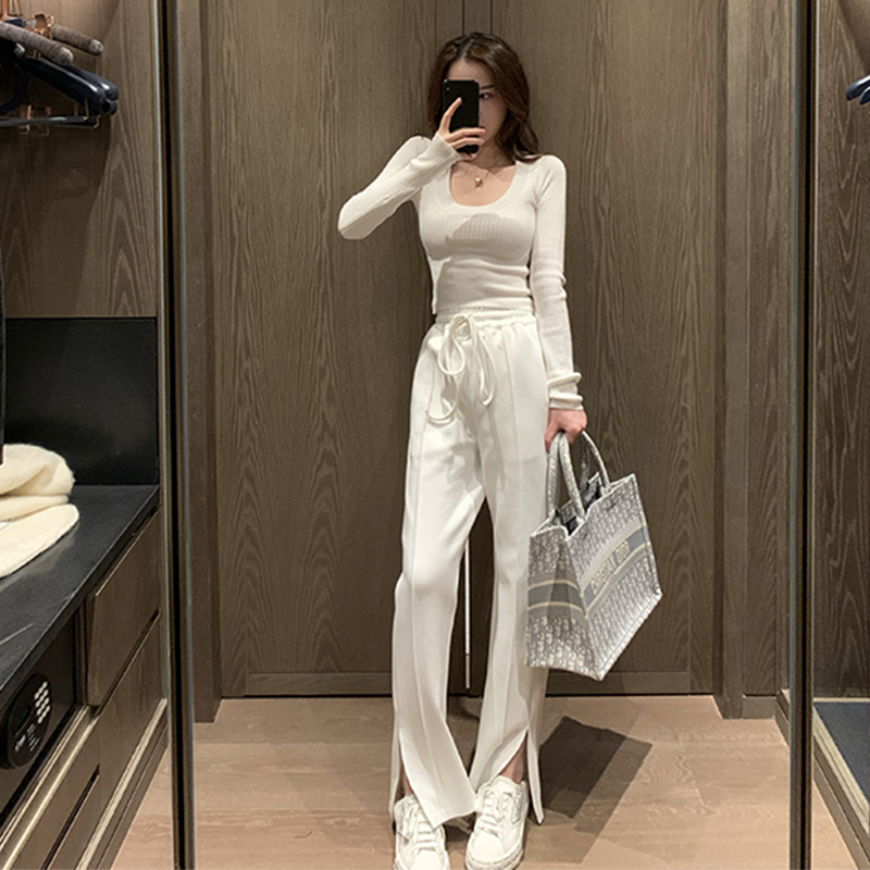 2022 - Early autumn side with cross legged pants high waist vertical pants loose small, casual white pants