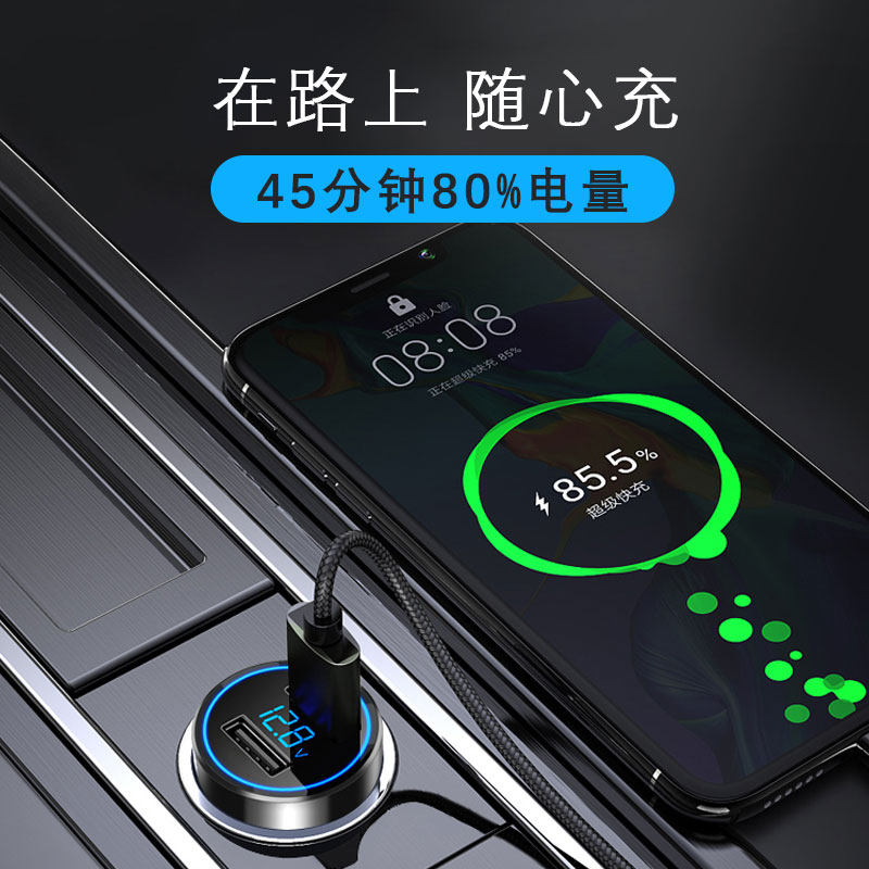 On-board charger mobile phone fast charging car Neusb one drag two cigarette lighter convert plug mesh red with atmosphere light