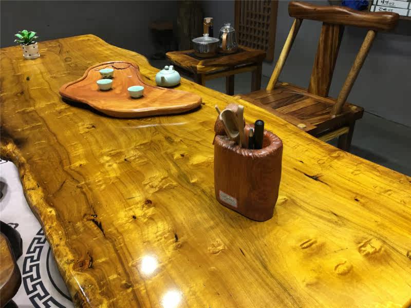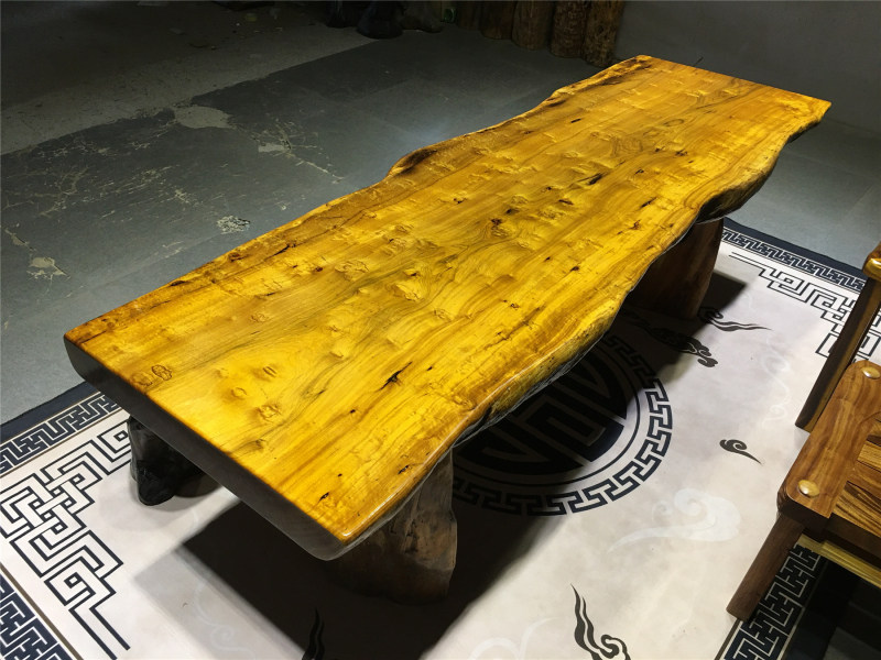 Golden camphor large board without stitching solid wood tea table natural side desk conference table living room dining table whole log