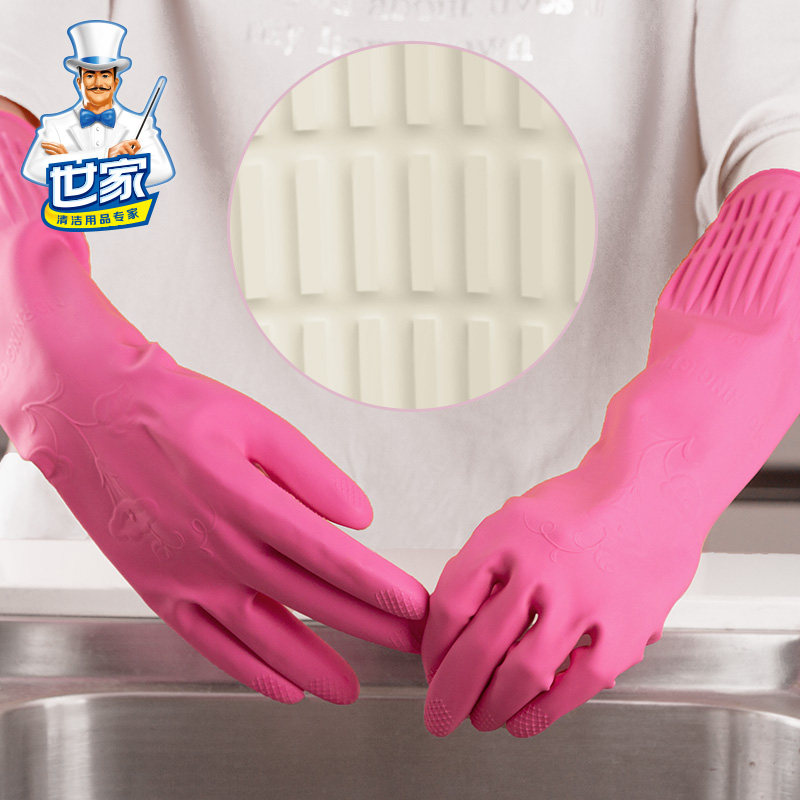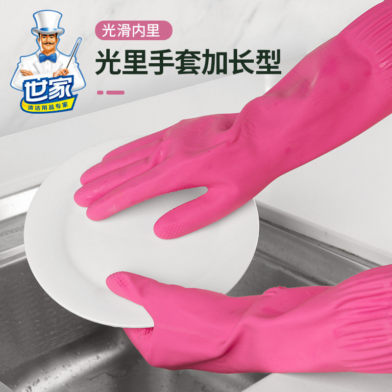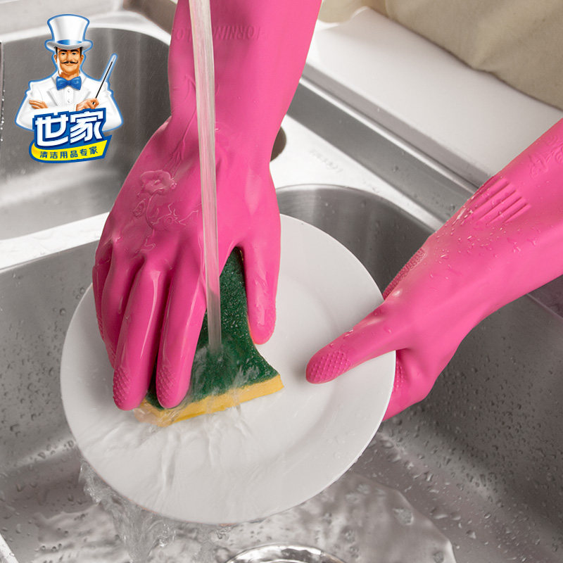 Family extended housework gloves waterproof and durable natural latex brush bowl housework kitchen rubber fleece women's laundry