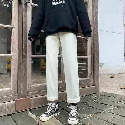Off-white jeans women's straight chic harbor style new high waist slim high loose big leg beige pants