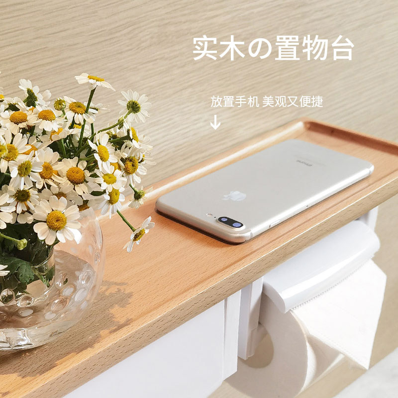 Free Punching Paper Towel Rack Toilet Makeup Room Wall-mounted Wall Type Beech Wood Walnuts Solid Wood Roll Toilet Paper Shelve Shelf Storage Box