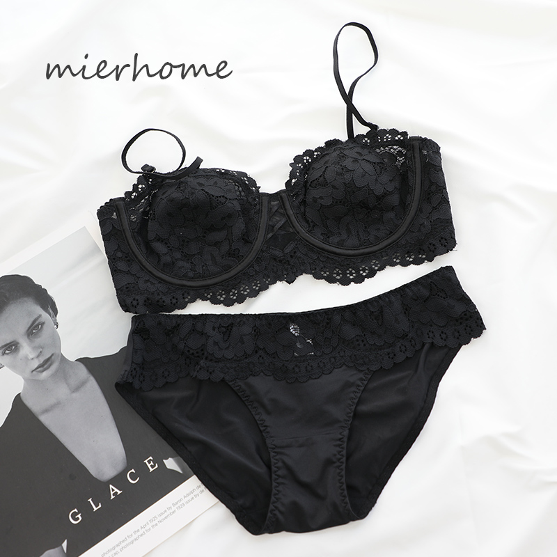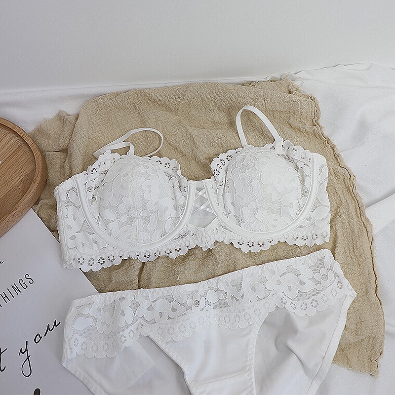 Mi - two pure - air girl hollow lace underwear set soft steel ring comfortable breathable ultra - thin sexy bras