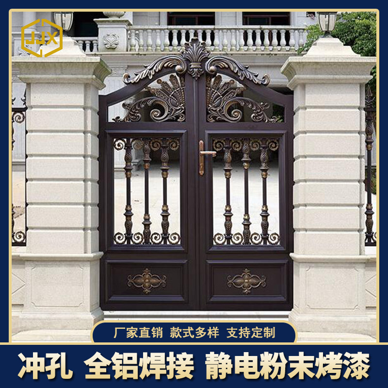 Aluminum Art Gate Courtyard door Villa Gate Courtyard Entrance door Electric remote control flat open double open door Country courtyard