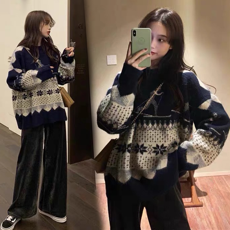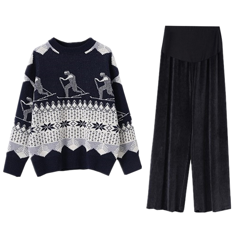 Maternity Spring Suit Fashion 2021 New Sweater Net Red Foreign Air Winter Top Wide Leg Pants Two-Piece Tide