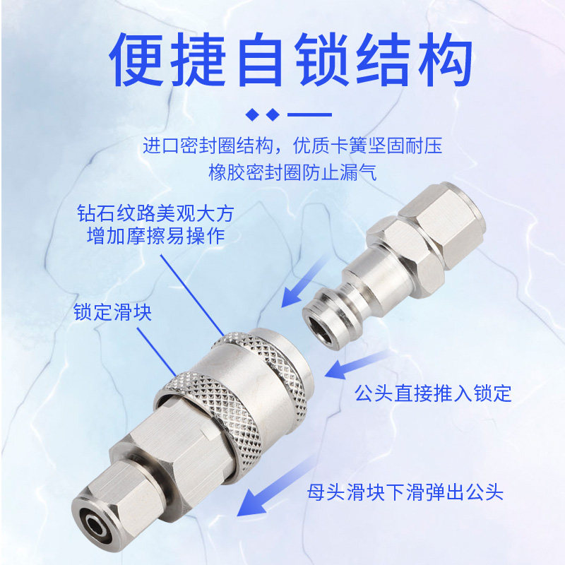European-style self-locking quick mini connector C-style copper nickel-plated trachea quick-plug combination SH PH SK PK6 8 10