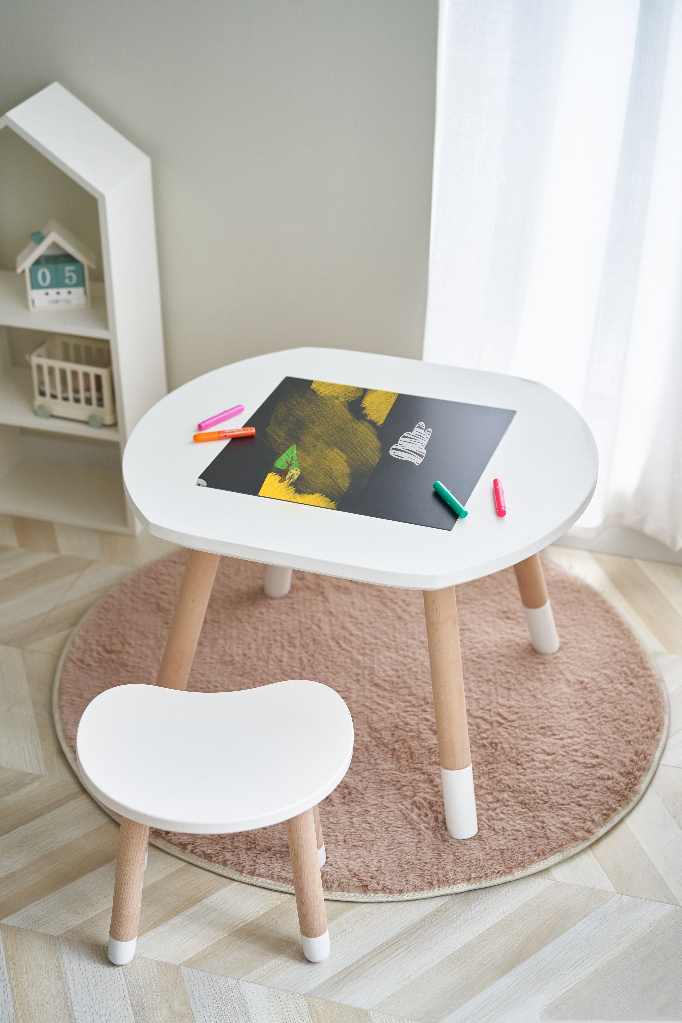 Custom INS Wind Children solid wood Lehigh table and chairs kit baby table and chairs room decoration photo props