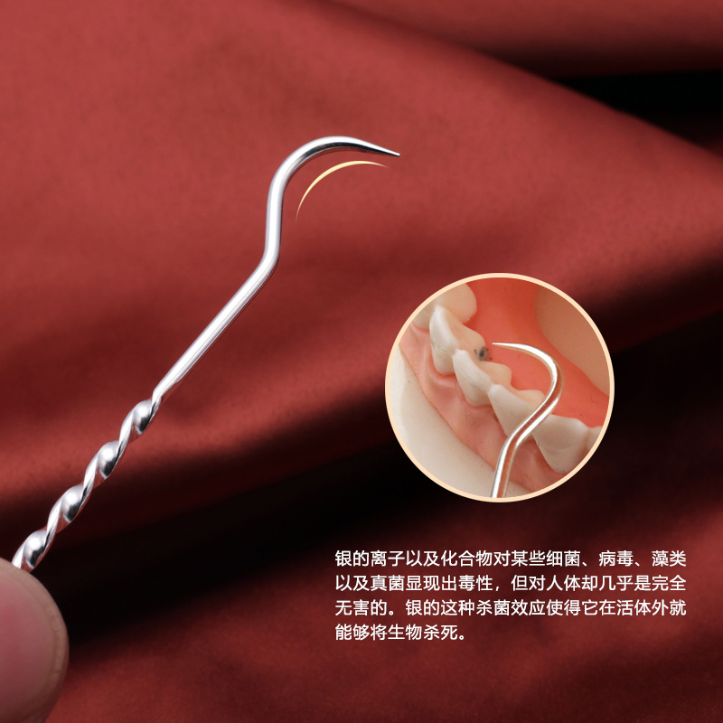 Household 999 sterling silver toothpick flossing seam crochet plugging artifact Portable oral cleaning Stainless steel tooth hook tool
