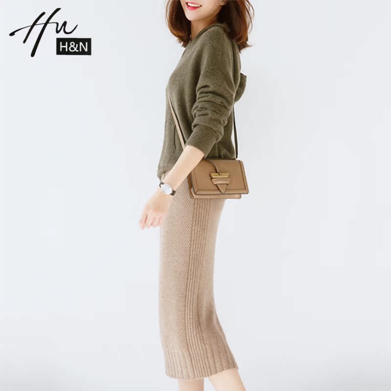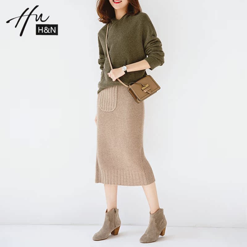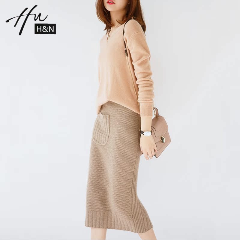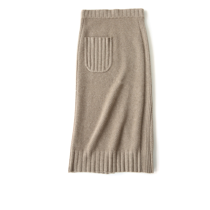 2022 autumn and winter new women's cashmere knitted skirt women's mid-length version thickened slit wool bag hip one-step skirt