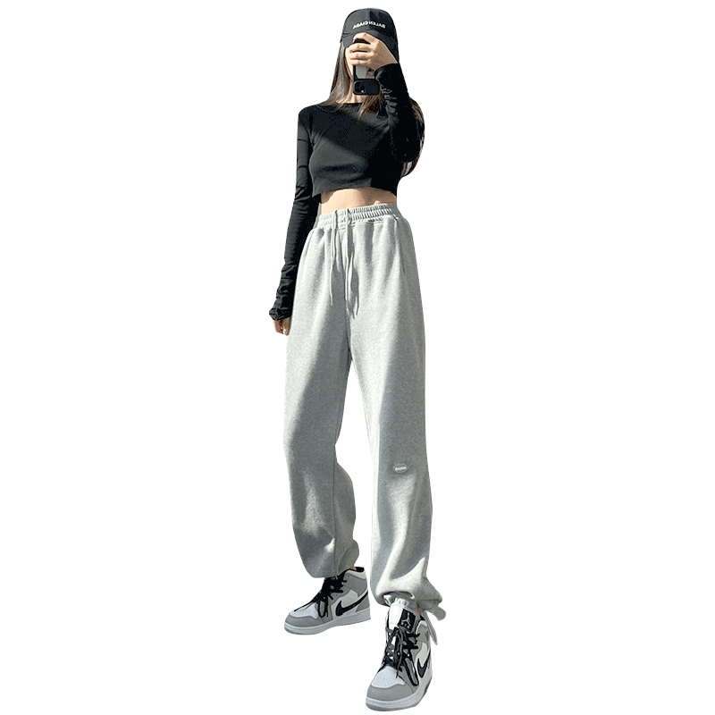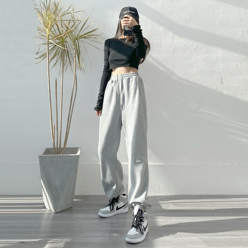 Grey sports pants women's spring and autumn loose beam pants plus velvet autumn and winter 2022 new wide-leg casual thick cotton pants