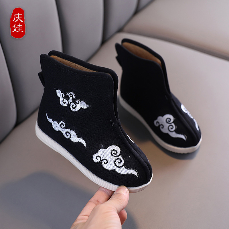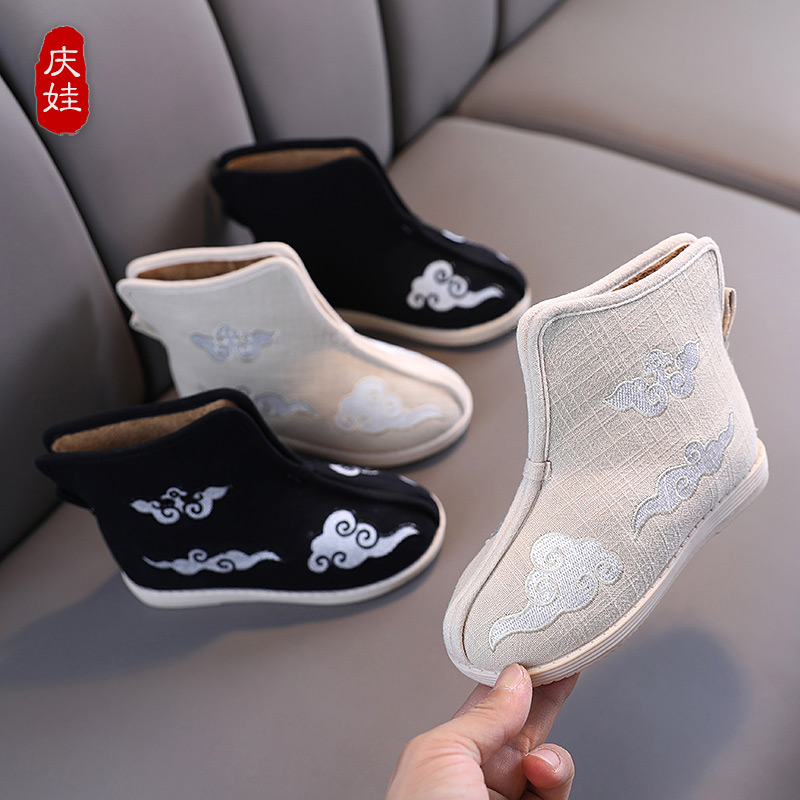 Children's New Year Shoes Boy Old Beijing Cloth Shoes Hanfu Ancient Clothing Short Boots Performance Boots Cotton Shoes Winter Gush-Taobao