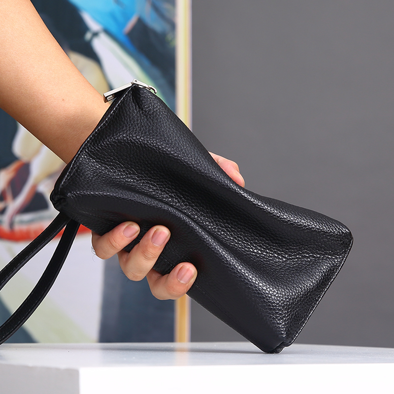 New Head Layer Bull Leather Handbag Men Genuine Leather Handbag Full Leather Small Clip Bag Soft Leather Fashion Phone Wallet Tide
