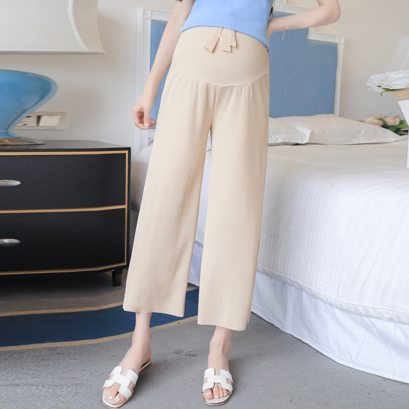 Pregnant Woman Pants Spring Autumn Clothing Pituitary Pants 100 Hitch Gestation Late Spring Summer Season Summer Dress Ice Silk Straight Barrel Nursery 90% Pants