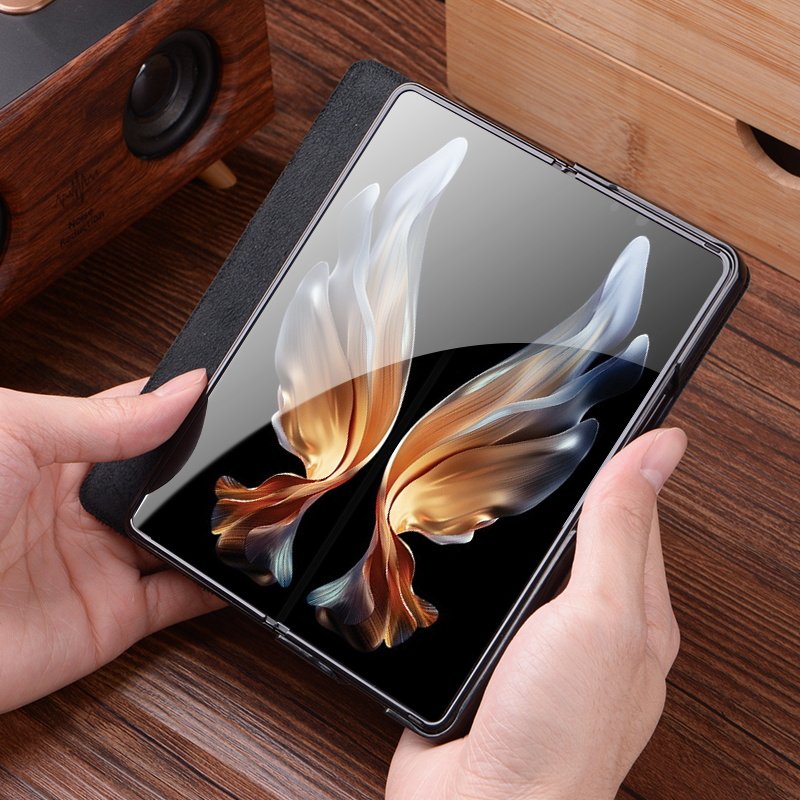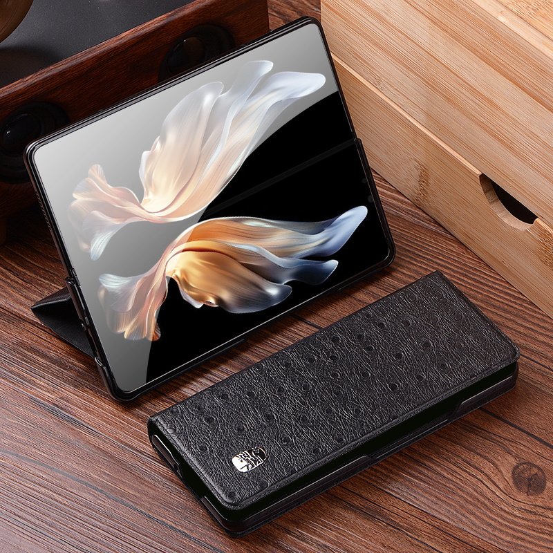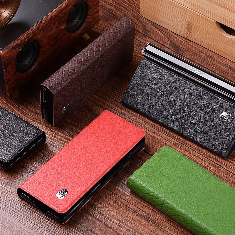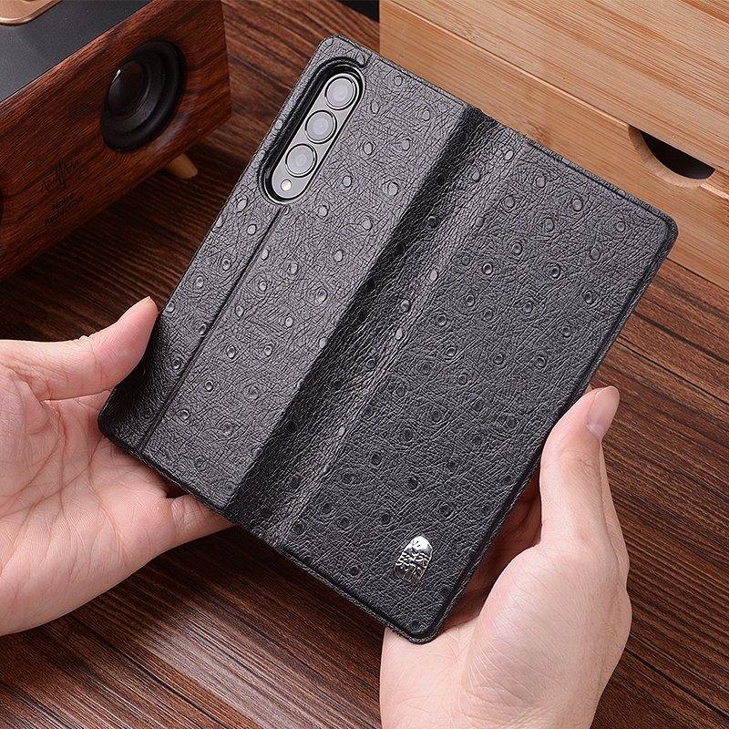 Suitable for Samsung zfold4 mobile phone case clamshell bracket w23 protective case fold3 folding screen case zfold2 genuine leather case heart for the world mobile phone case high-grade cowhide w2022 protective case