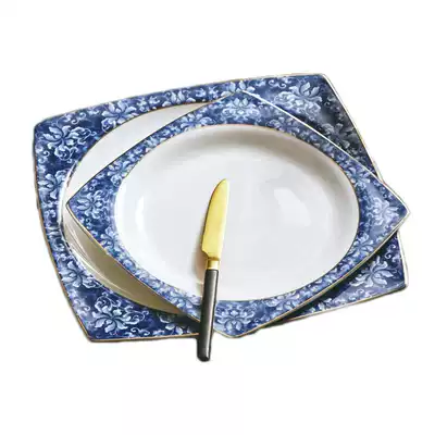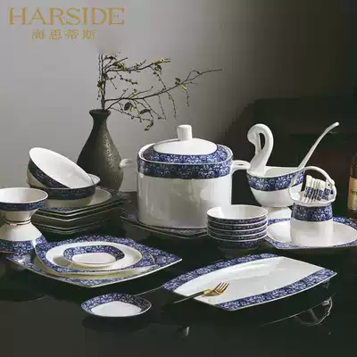 HARSIDE Jingdezhen bone china dishes set home neoclassical Chinese cutlery set blue and white bowl plate combination