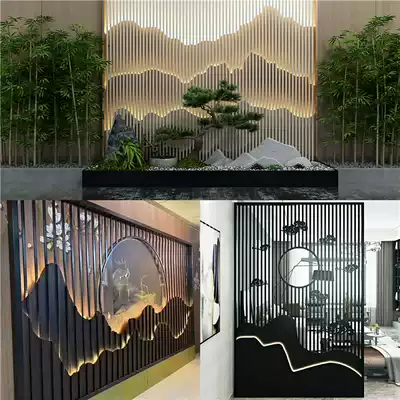 Stainless steel screen partition Hotel lobby decoration metal grille landscape painting rockery background wall bronze fixed