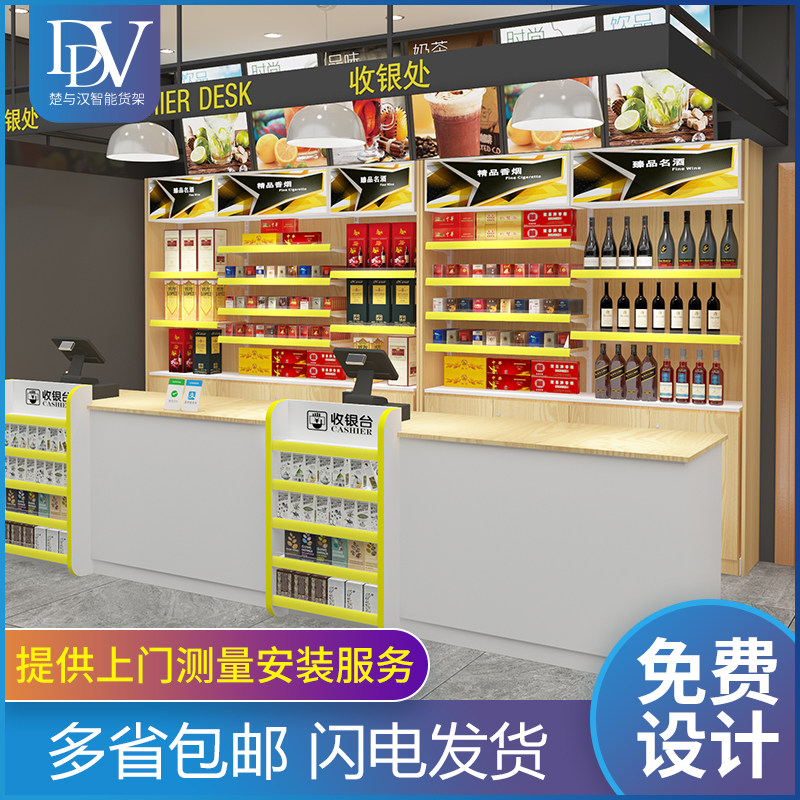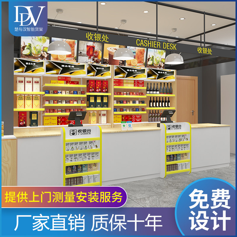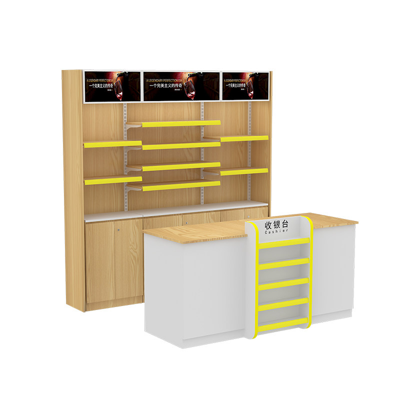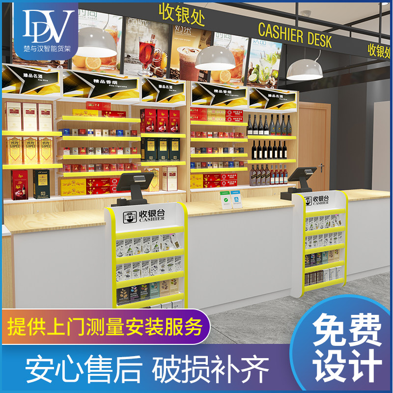Supermarket cashier counter steel wood against the wall wine back cabinet convenience store liquor, cigarette liquor cabinet combination cigarette rack display cabinet bar