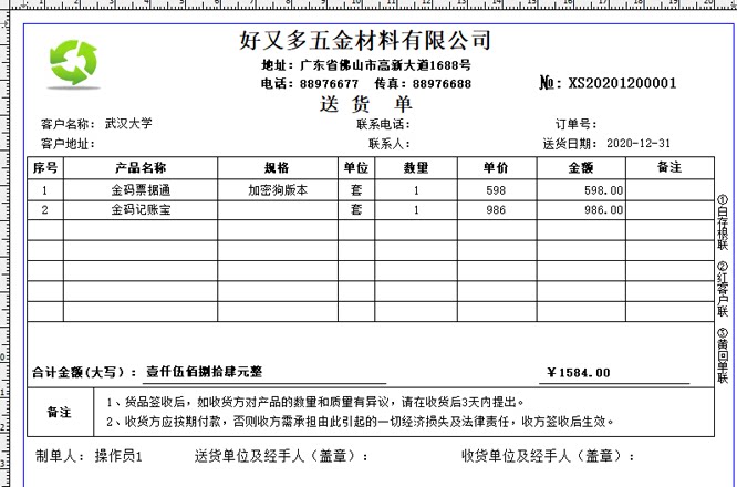 Delivery order printing software Receipt outbound sales order bill of lading printing All bills can be printed