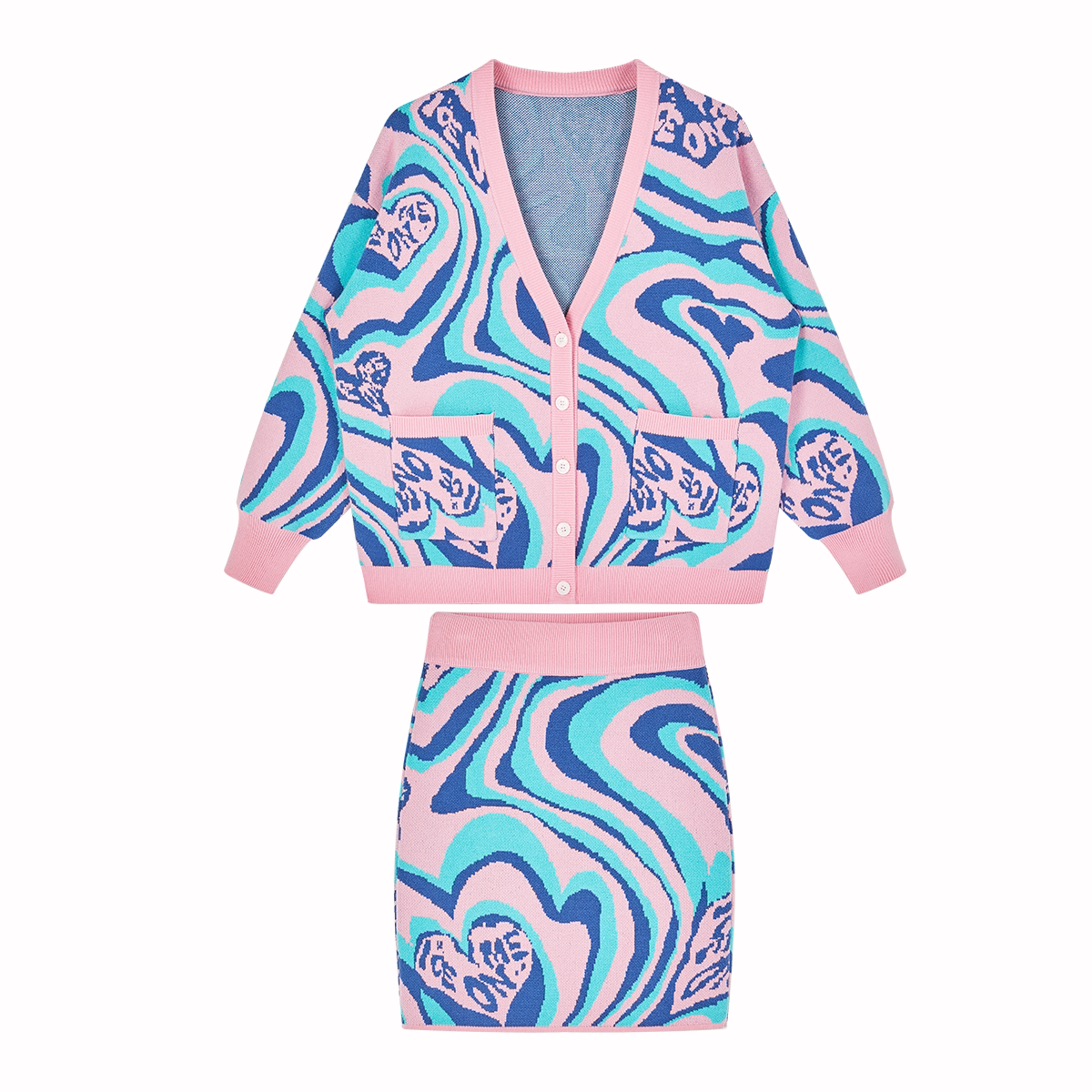 ICEONME sweetheart candy hit color love logo knitted suit skirt women's two-piece girl suit autumn