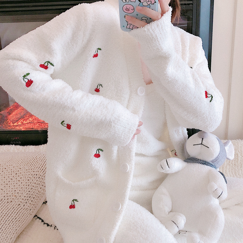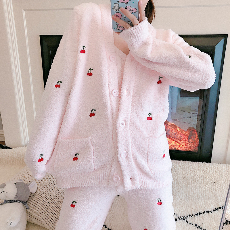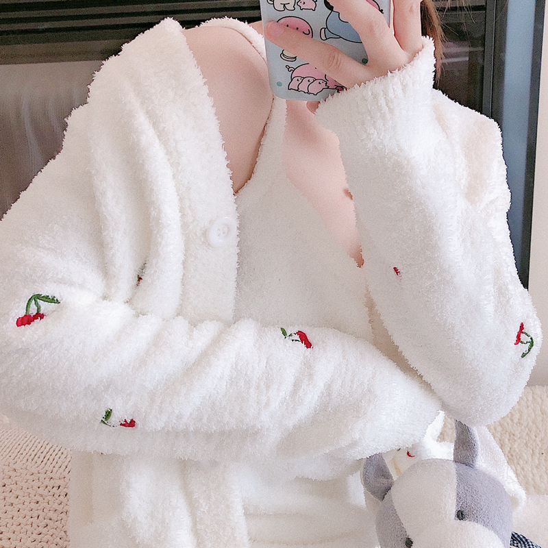 Daily Gtra~ Xiaohongshu recommends pajamas women's autumn and winter coral fleece small cherry sweet cardigan three-piece set
