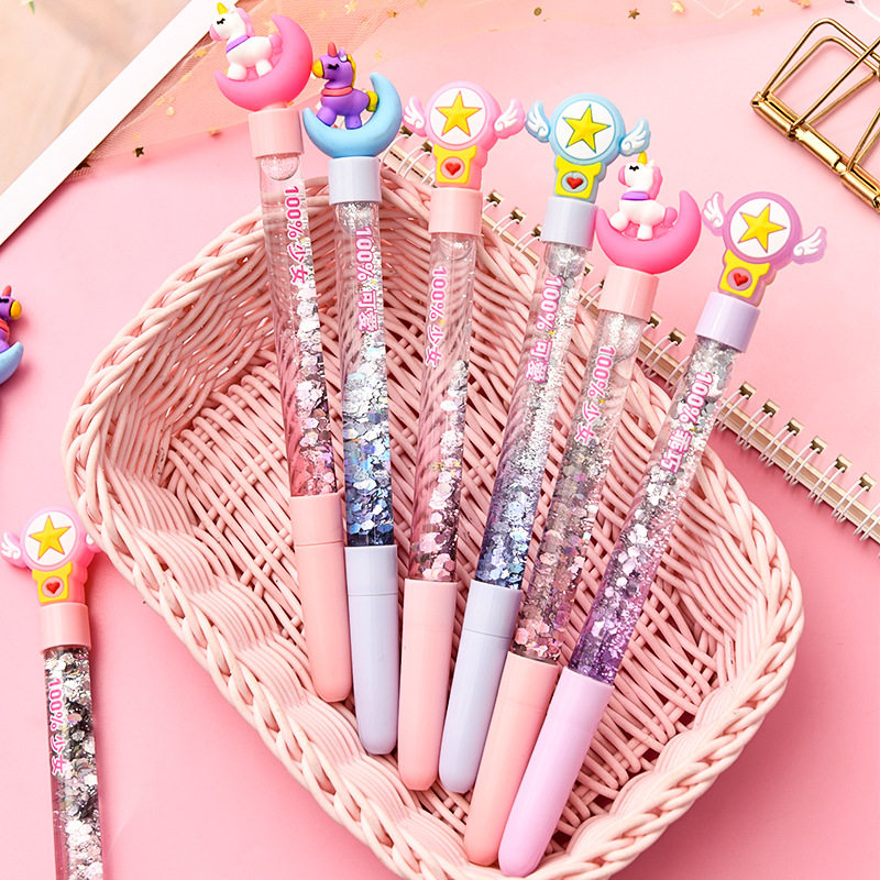 Quicksand gel pen cartoon cute girl flash black creative vibrato super cute net red primary school student stationery