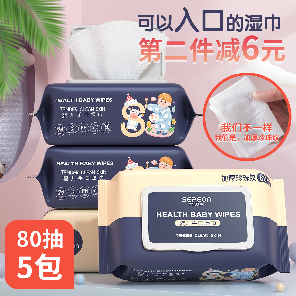 San Bain baby wipes paper towels for newborn hands and mouth special fart baby children 80 pumping 5 large packaging specials