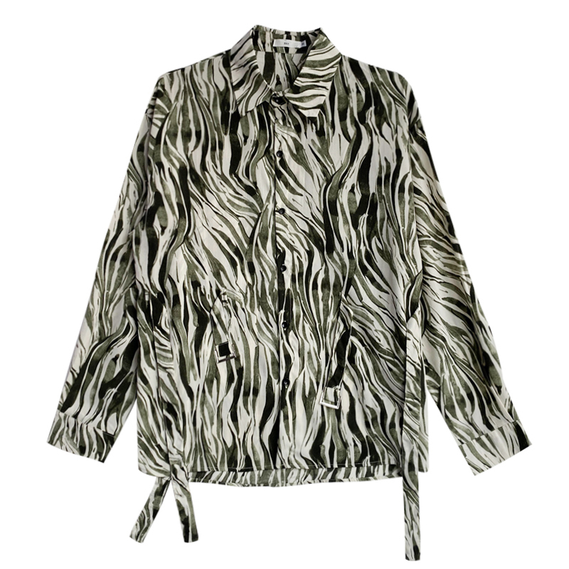 (Love to wear help) Fall loose Lazy Print Shirt Male small crowdwear long sleeve shirt trendy ruffrin handsome in