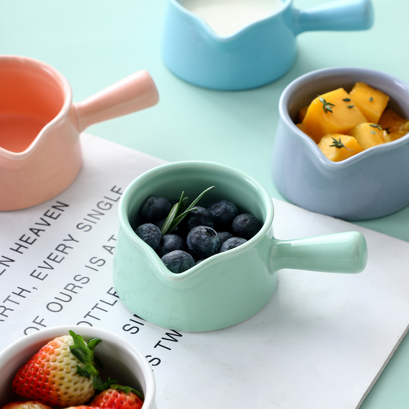 Ceramic Sauce Hopper Single Handle Small Milk Punch Mini Snack Bowl Coffee Chaperone Cup Glazed Under color Little Flushing Milk Spoon Seasoned Dish