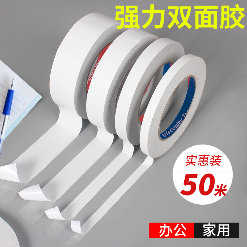 Powerful double-sided adhesive for students with high viscosity Manual two sides glue 50 m ultra-wide fixing wall cotton paper double-sided adhesive tape