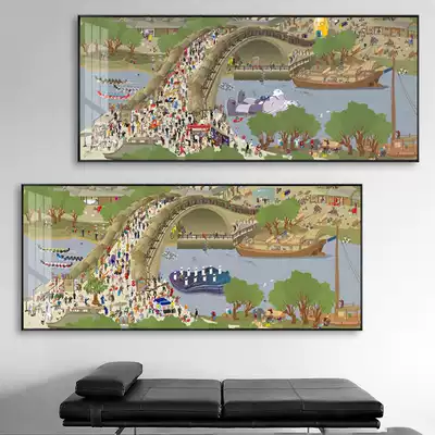 kaws trend mural Tide brand Qingming river map decorative painting creative living room background wall hanging painting bedroom bed painting